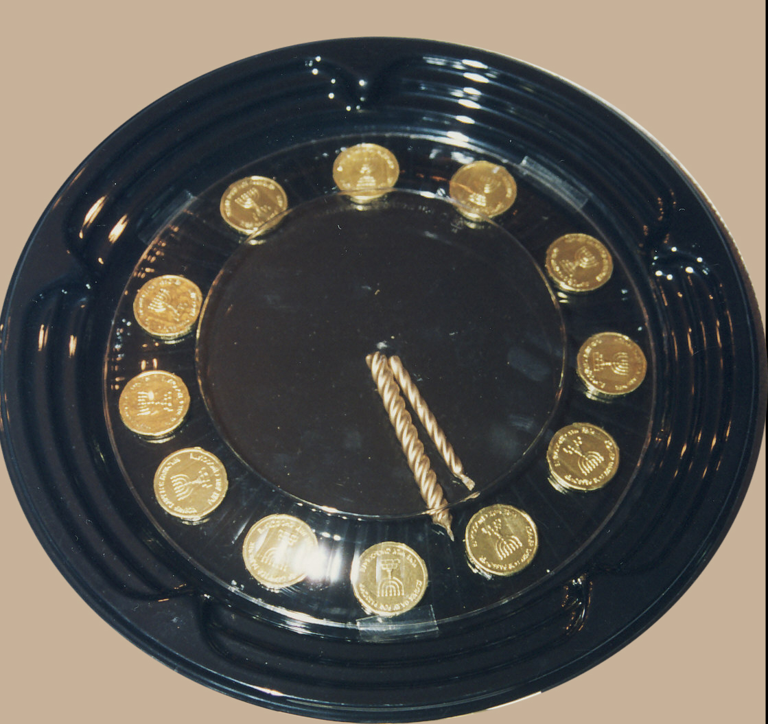 As Purim fell out on Friday, we made a clock pointing to the time Shabbos starts. We liked this theme so much, we actually recycled it 12 years later.