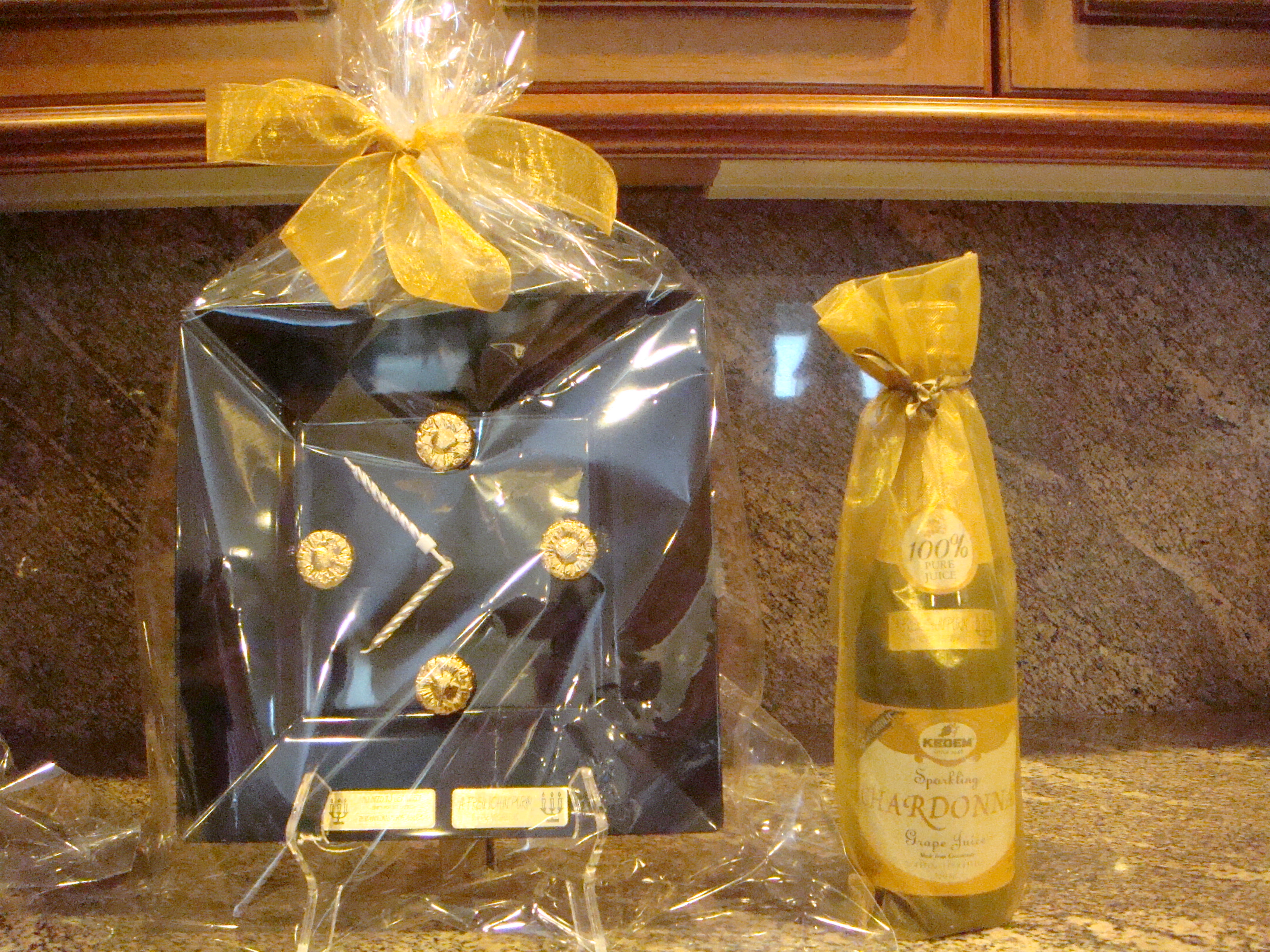 - Gold ribbon bow