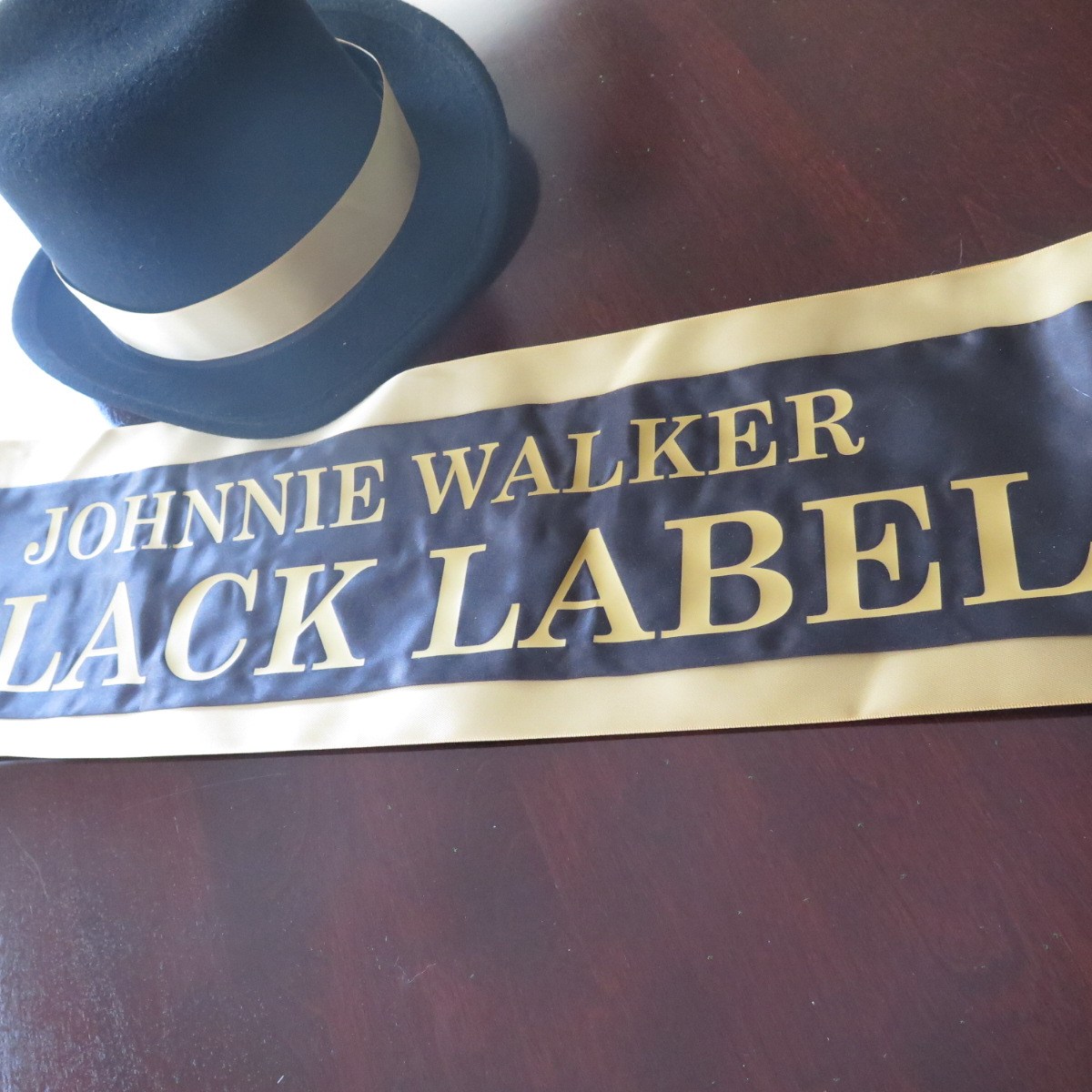- Johnnie Walker Black Label pageant sash with added gold ribbon border