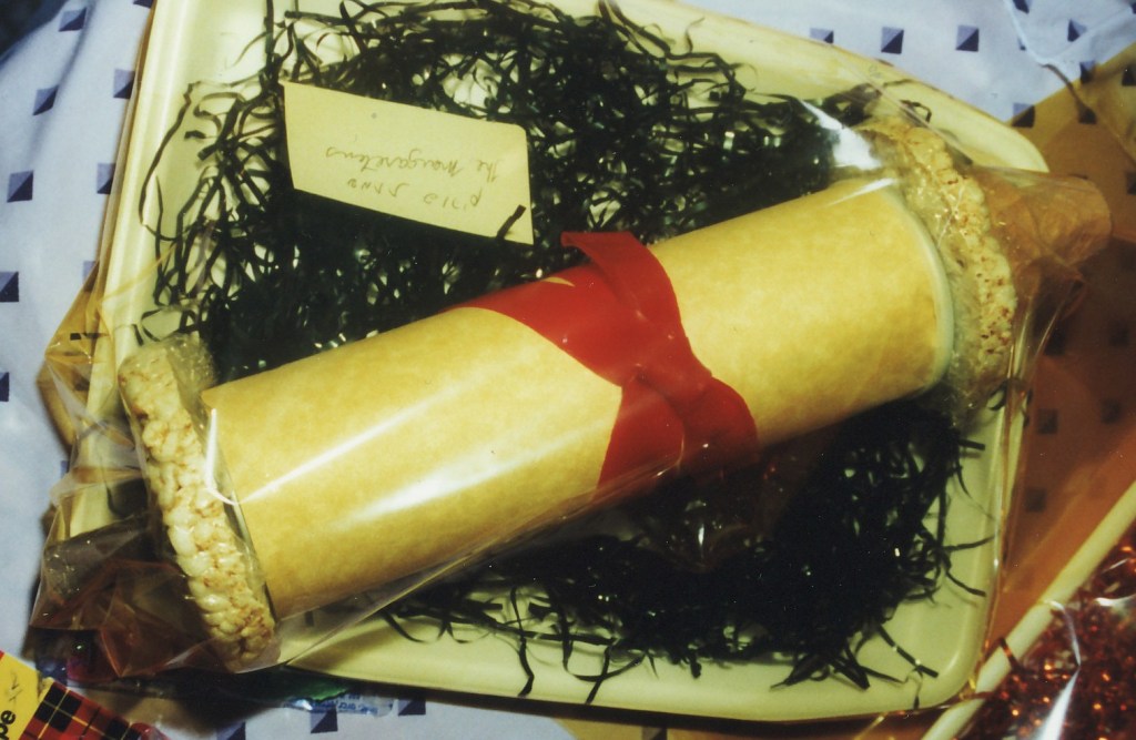 Megillah Megillah Purim Theme Year: 1993 By: The Margaretens Mishloach Manos 2 Ice Cream Cones (not sugar cones)2 Round Rice Cakes1 Can Pringles (covered in parchment style paper)1 Red Fruit-By-The-Foot Bow Related