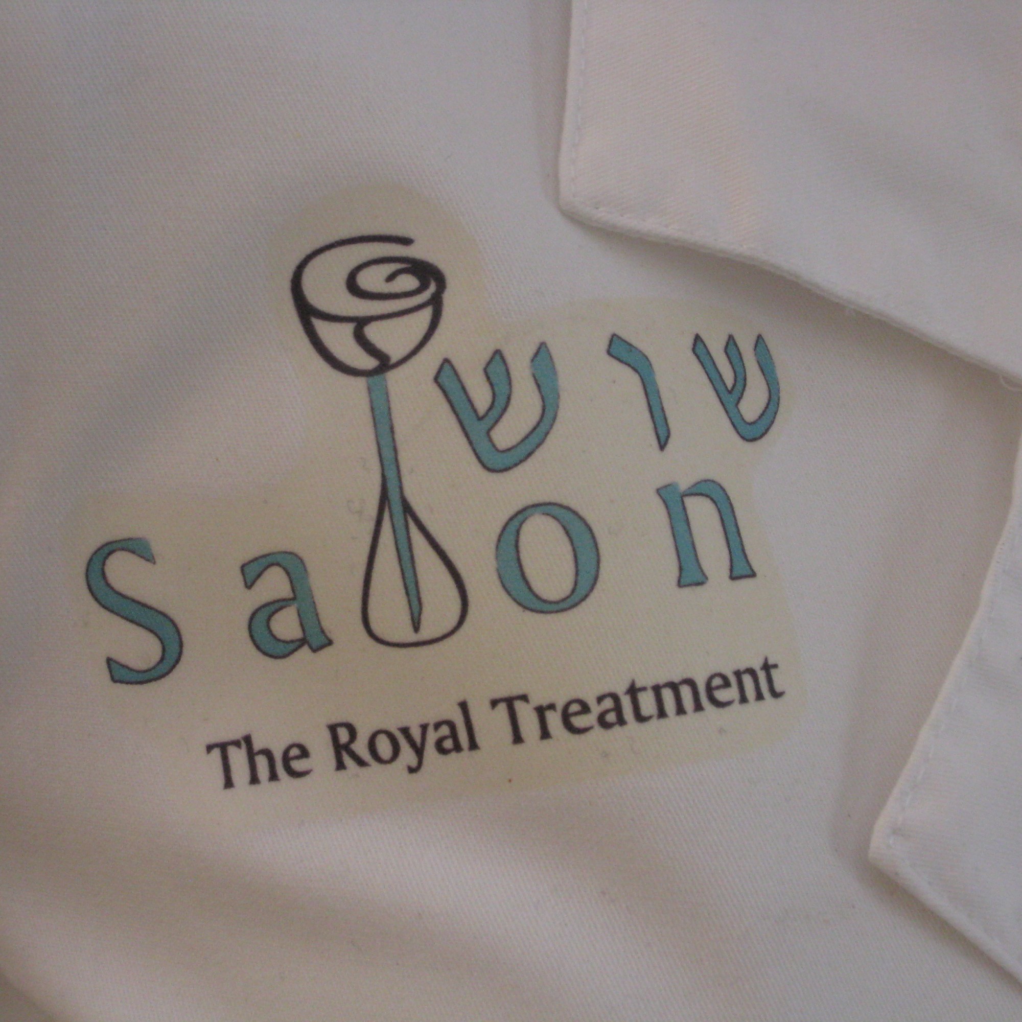 - White lab coat/ salon smock with logo ironed on
